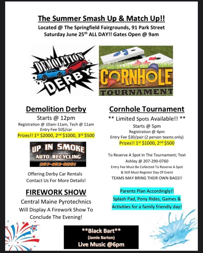 And as if all this isn’t enough, there’s a big fireworks show going off at dark. Springfield Fairgrounds. June 25th. Be there or be square (for people under 40 – ask your parents). Sponsors for the big day are: Maine Woods Crafts, The Forester Pub, Northern Pine Creations, K&K Kakes and Nicastro’s Landscaping.